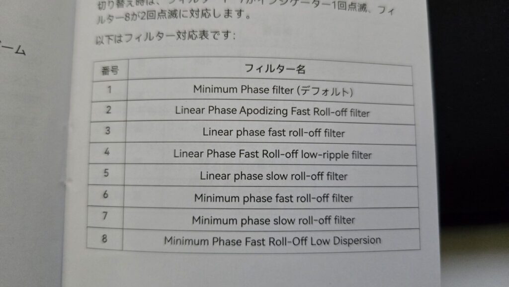- 良かった点⑦:8種類のデジタルフィルターで好みの音に微調整が可能