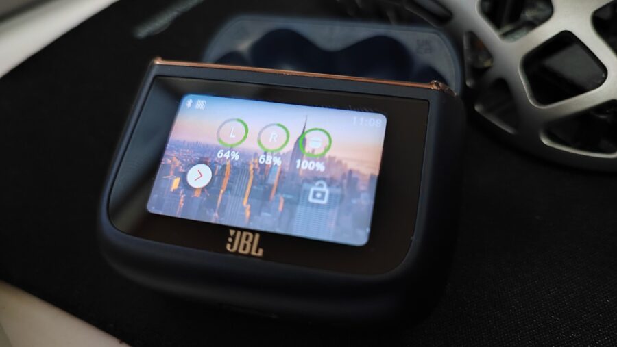 ノイズキャンセリング、外音取り込み、無線充電、防水防塵性能、通話機能など、普段遣いで便利な必要な機能を網羅したうえで、タッチスクリーン付きのケースなどJBLならではの機能も搭載しているのが特徴ですね。